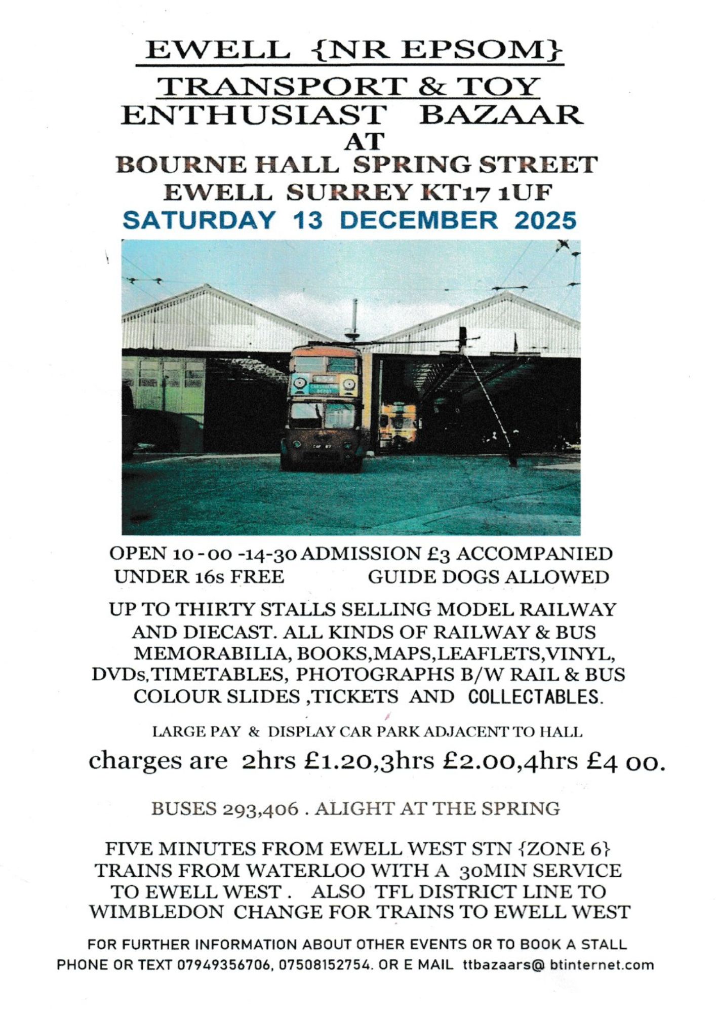 Ewell Transport & Toy Enthusiast Bazaar - Saturday 13th December